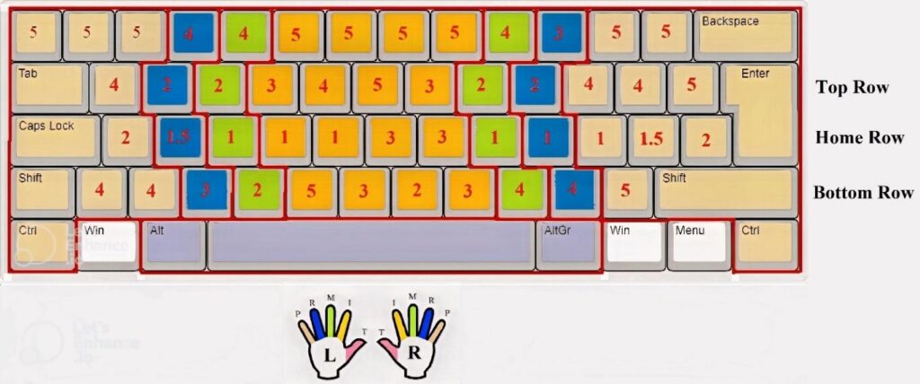 En fusionnant le modèle de stress et les fréquences des lettres, les assignations minimisent les changements de doigts et la fatigue :